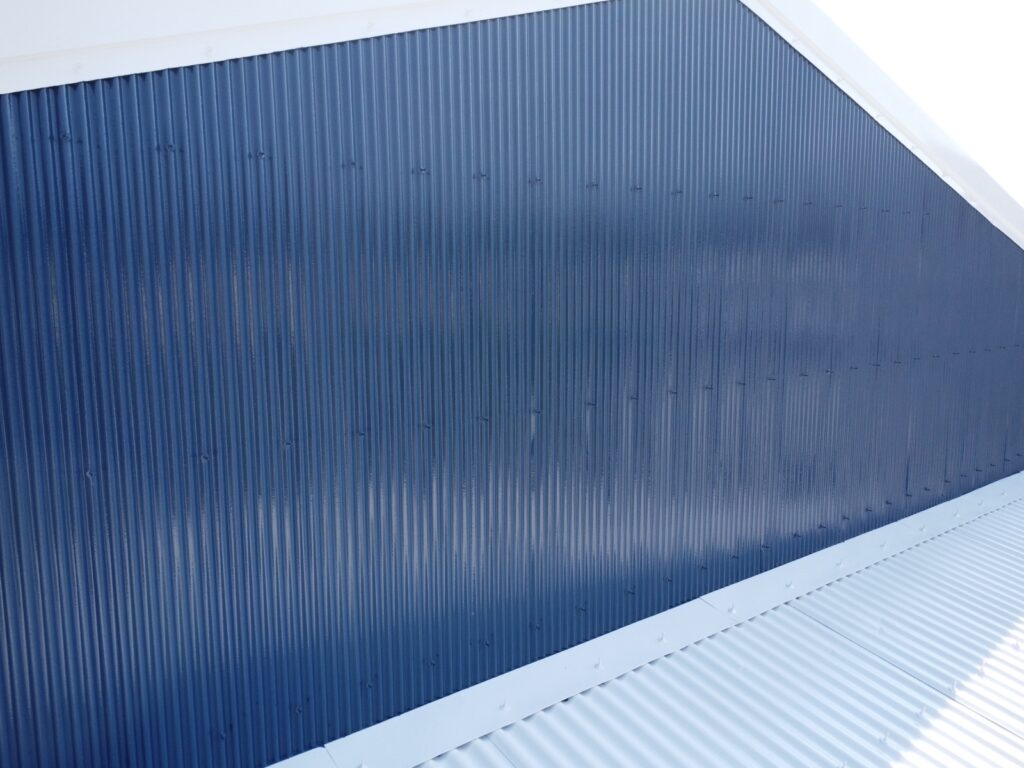 外壁塗装 海南市の施工では、色選びも重要なポイントです。今回のM様倉庫では、ディープブルーとホワイトのツートンカラーでスタイリッシュな印象に仕上げました。