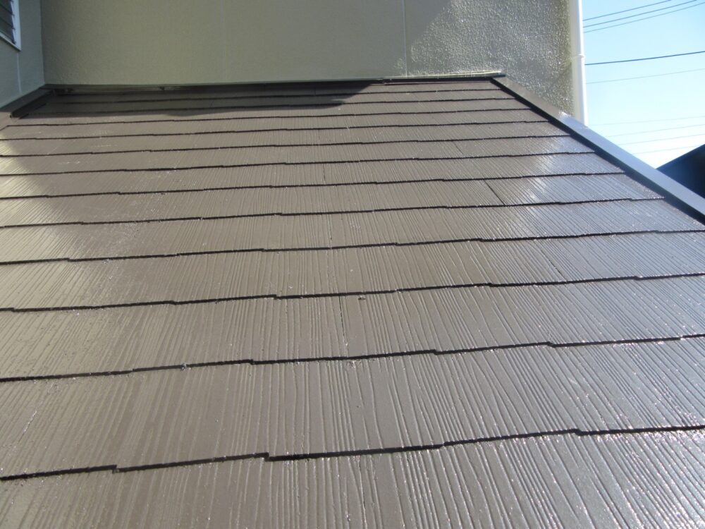 外壁全体にはメインカラーとして、明るく温かみのあるライトグリーン系統色を、屋根には重厚感と落ち着いた印象を与えてくれるディープブラウン系のお色を選ばれました。周囲の景観にも馴染むおしゃれな色味で、O様邸の外観が見違えるほど綺麗になりました。