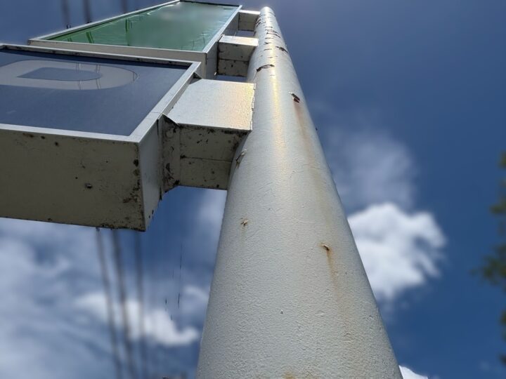 Kクリニック様から「看板の鉄柱部分が劣化してきたので、一度診断に来て欲しい」とのご相談をいただき、該当する部分の診断を行いました。