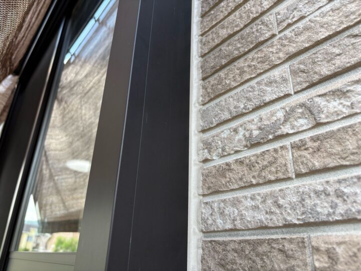 目地やサッシ周りには、新しい高耐久コーキングを打設しました。このコーキング材は、長期間の防水性能を発揮し、今後の劣化を抑えます。